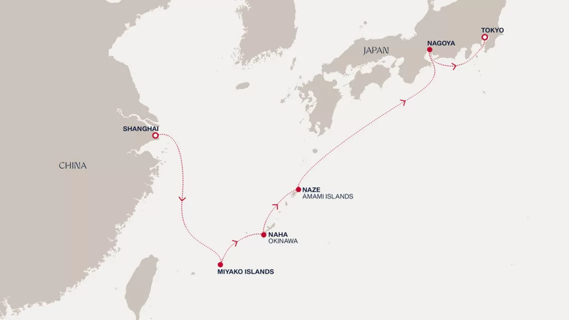Маршрут круиза: Шанхай - море - Миякодзима - Наха - Наха - Эр - море - Нагоя - Токио