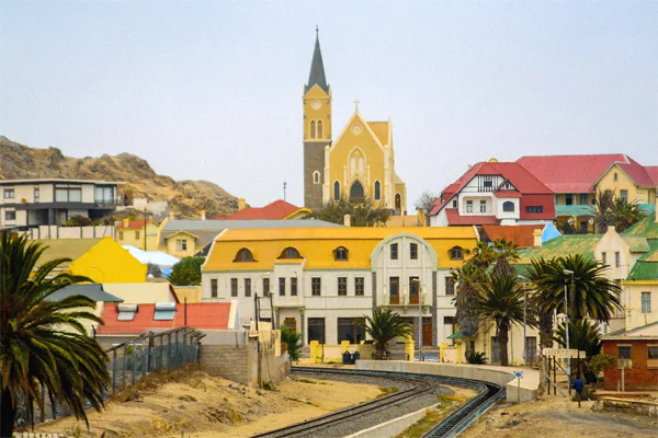 Другой заметной достопримечательностью колониальных времён является Фельзенкирхе («Церковь на скале») — лютеранская церковь, построенная в 1912 на вершине каменистого холма. Церковь с ее «приподнятыми» к небу формами представляет собой образец стиля английской готики — его «вертикальной» разновидности, которая доминировала в викторианскую эпоху, а не наиболее популярного в немецкой церковной архитектуре неоготического стиля. Церковь украшена витражами и впечатляющей резьбой по дереву. Окно над алтарём — личный подарок немецкого кайзера Вильгельма II.