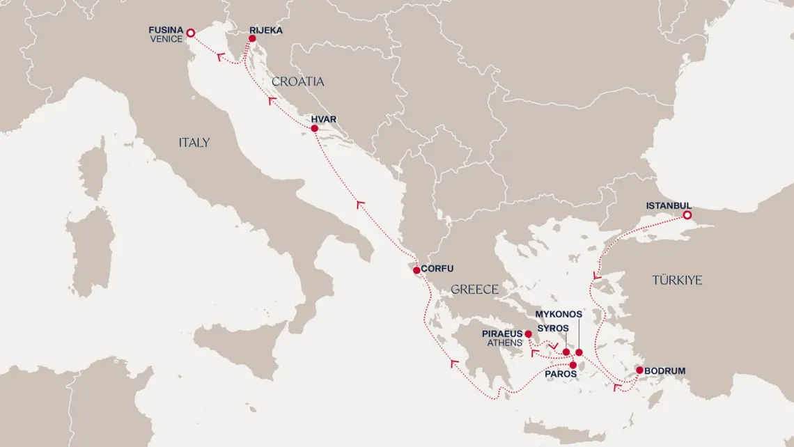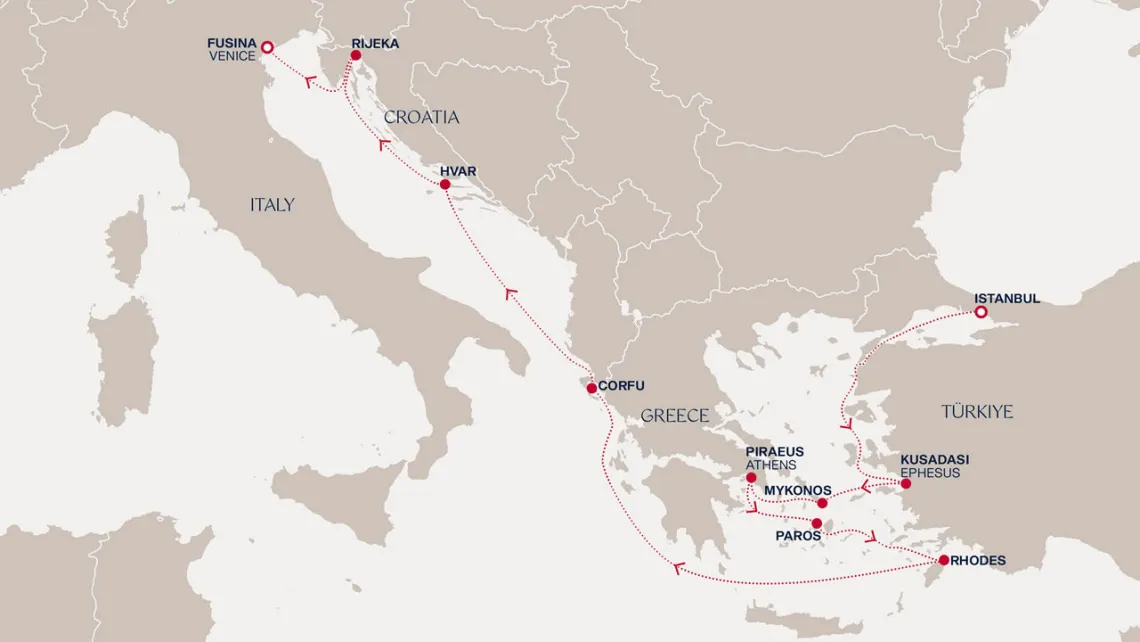 Маршрут круиза: Стамбул - море - о. Корфу - Бари - море - Пирей / Афины - Измир / Эфес - Стамбул