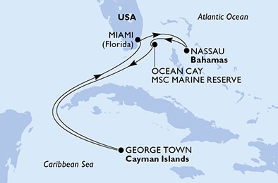 Маршрут круиза: Майами - Нассау - о. Оушен Кей - море - Джорджтаун, о. Большой Кайман - море - Майами