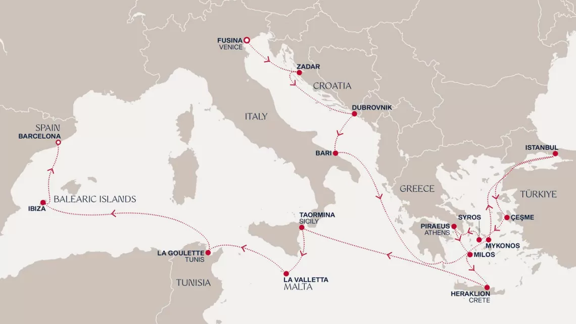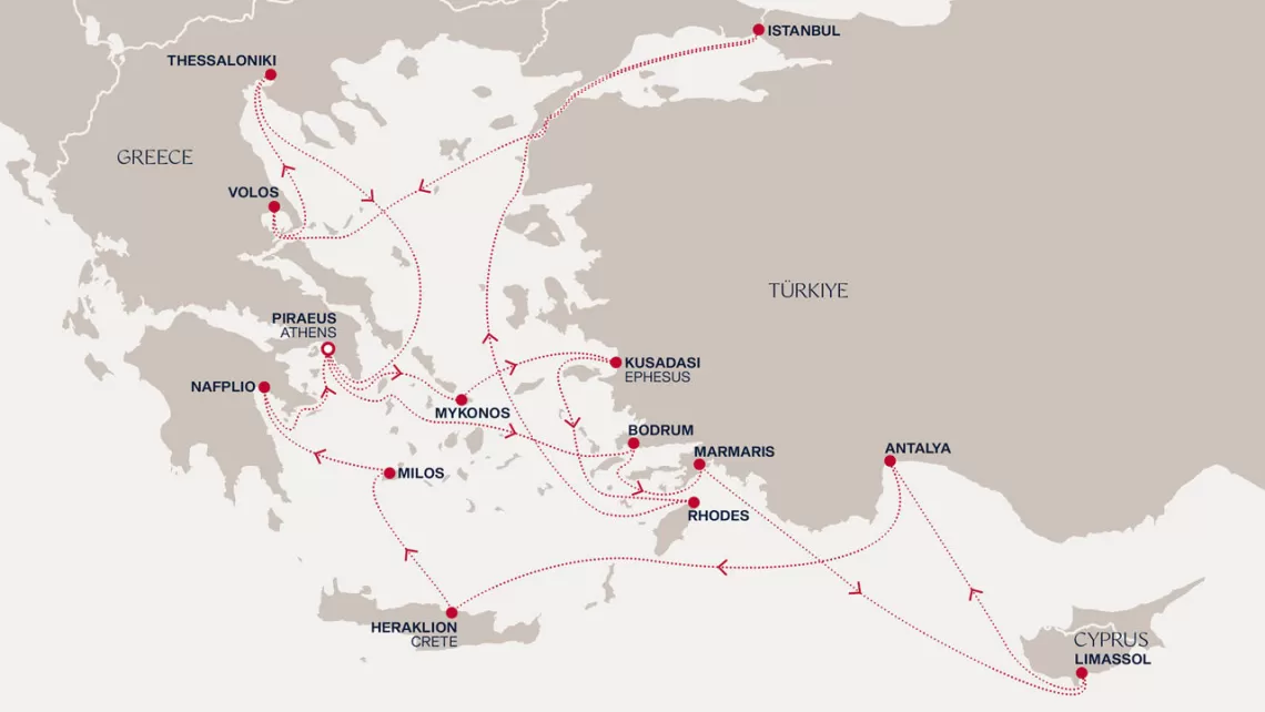 Кикладский остров Миконос – это сочетание скалистых гор и прекрасных пляжей. Добраться сюда можно с помощью тендеров до маленького пирса недалеко от Горы, столицы Миконоса. Отсюда курсируют автобусы до города, куда также можно добраться пешком. На фоне белой церкви Парапортиани, типичных ветряных мельниц и сверкающего моря Миконоса, расположен небольшой пляж, который тянется вдоль красочной бухты, в которой рыболовецкие лодки соседствуют с роскошными яхтами. Кристально белые дома кубической формы с белыми балконами расположены совсем рядом с маленькими магазинчиками и крошечными церквушками. Над бухтой возвышаются многочисленные таверны, которые являются популярным местом встреч.