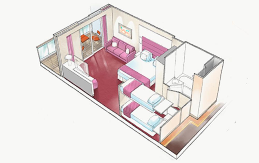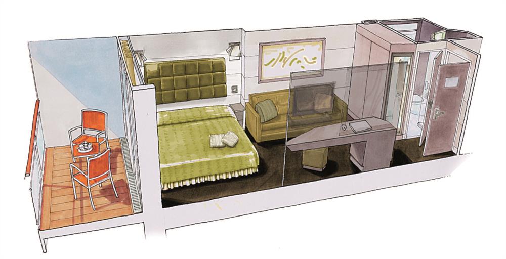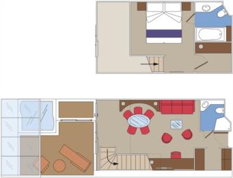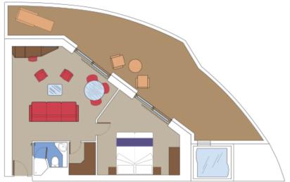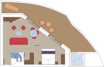 Площадь каюты: ~ 59 м2 (балкона ~ 23 м2)