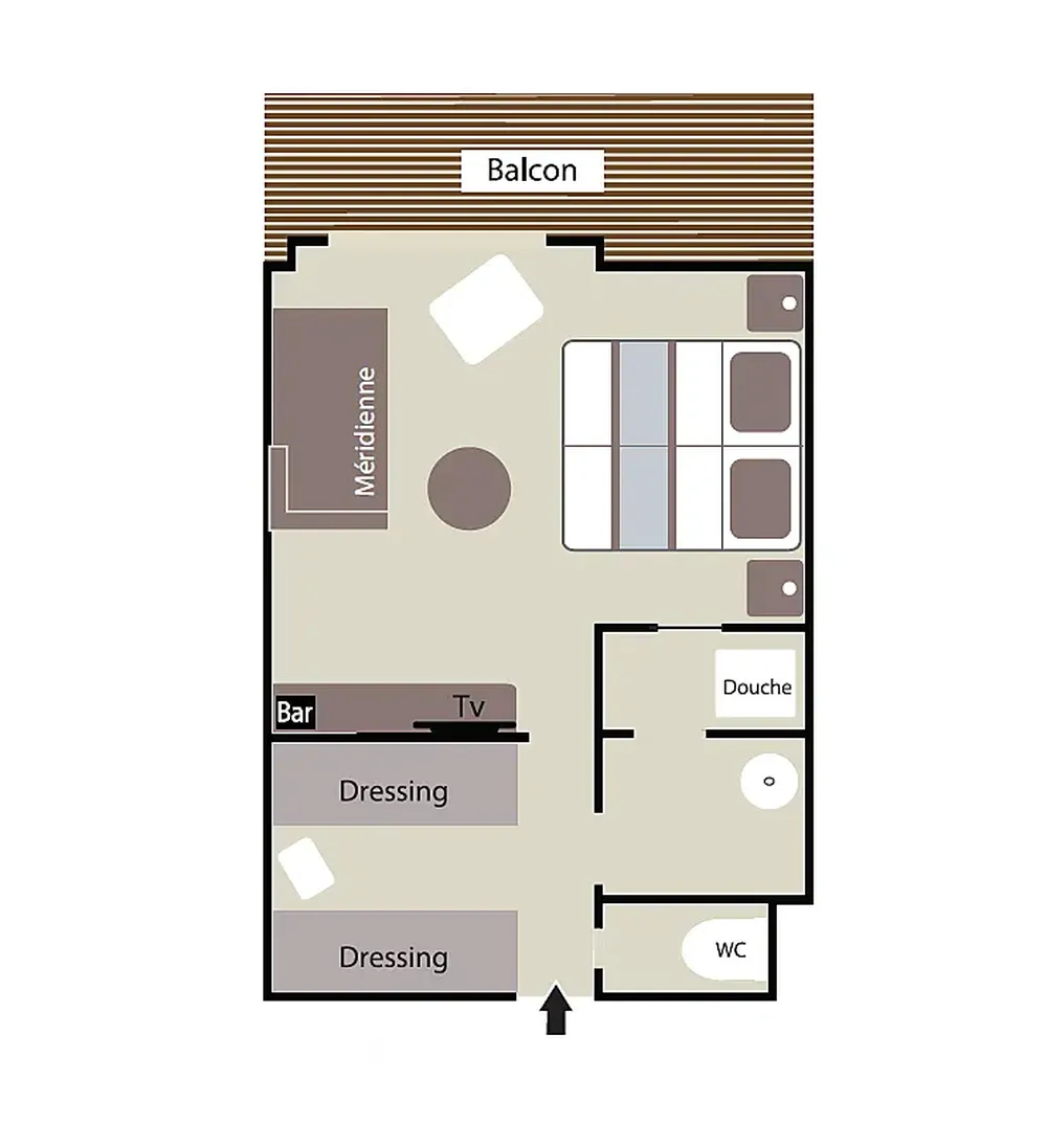 • Спальня с одной кроватью размера "king-size" (180 х 200 см) или двумя односпальными кроватями (90 х 200 см)