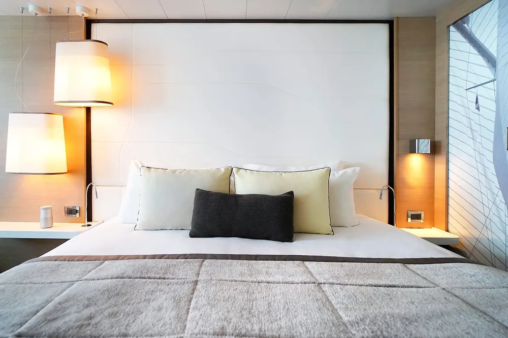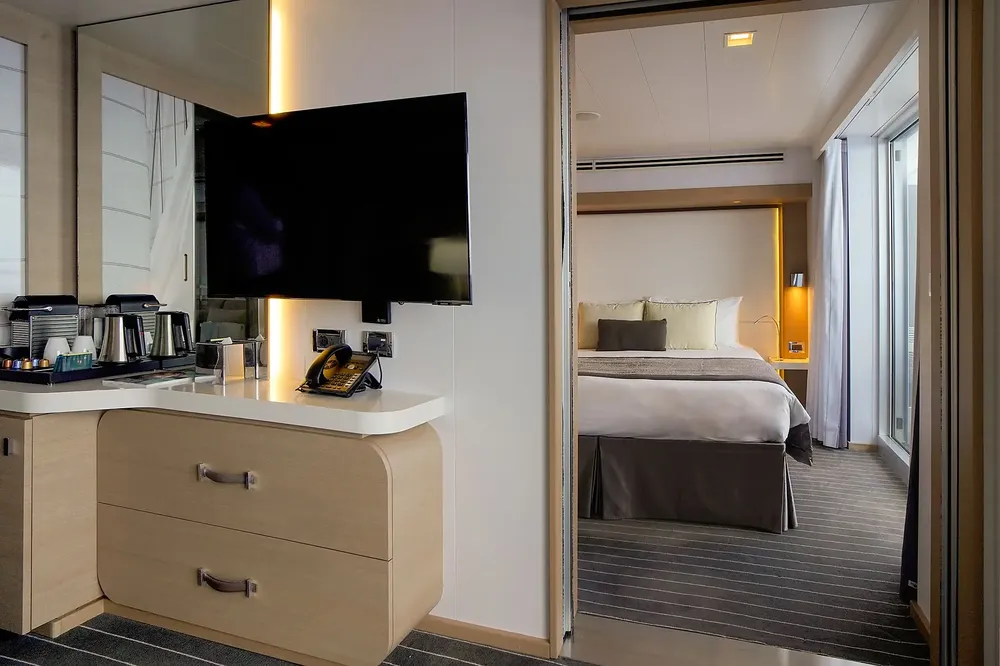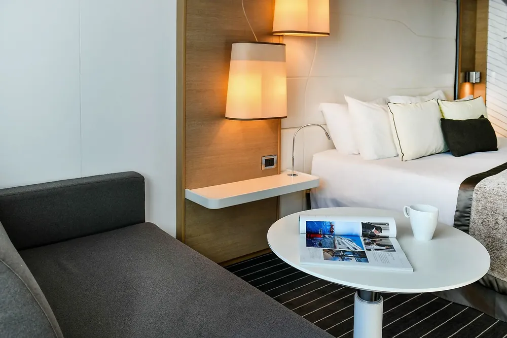Дизайн интерьера 132 кают и люксов Le Soleal выполнен в очень мягких и нежных тонах, оттенками серого и белого в сочетании с натуральным деревом. Таким образом, Le Soleal напоминает внешний вид и стиль мира яхтинга, в то же время добавляя нотку изысканности.