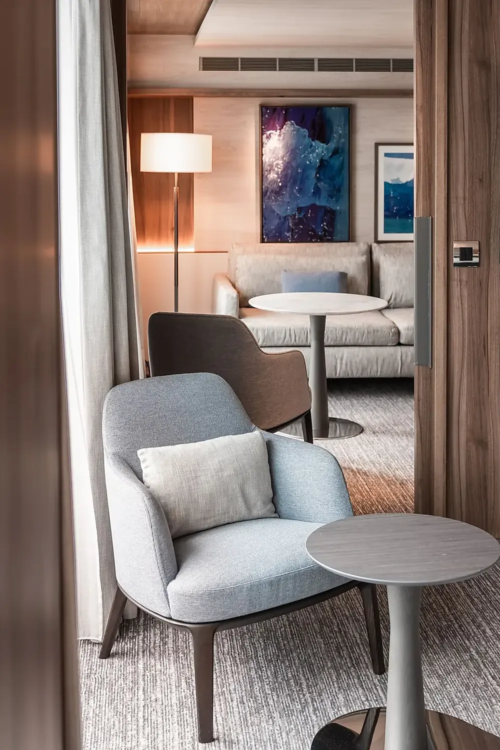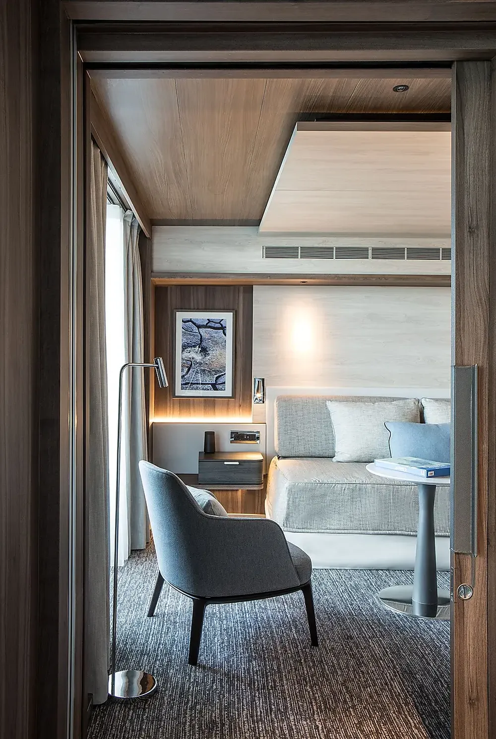 • Гостиная с диваном-кроватью, креслом и раздвижной дверью