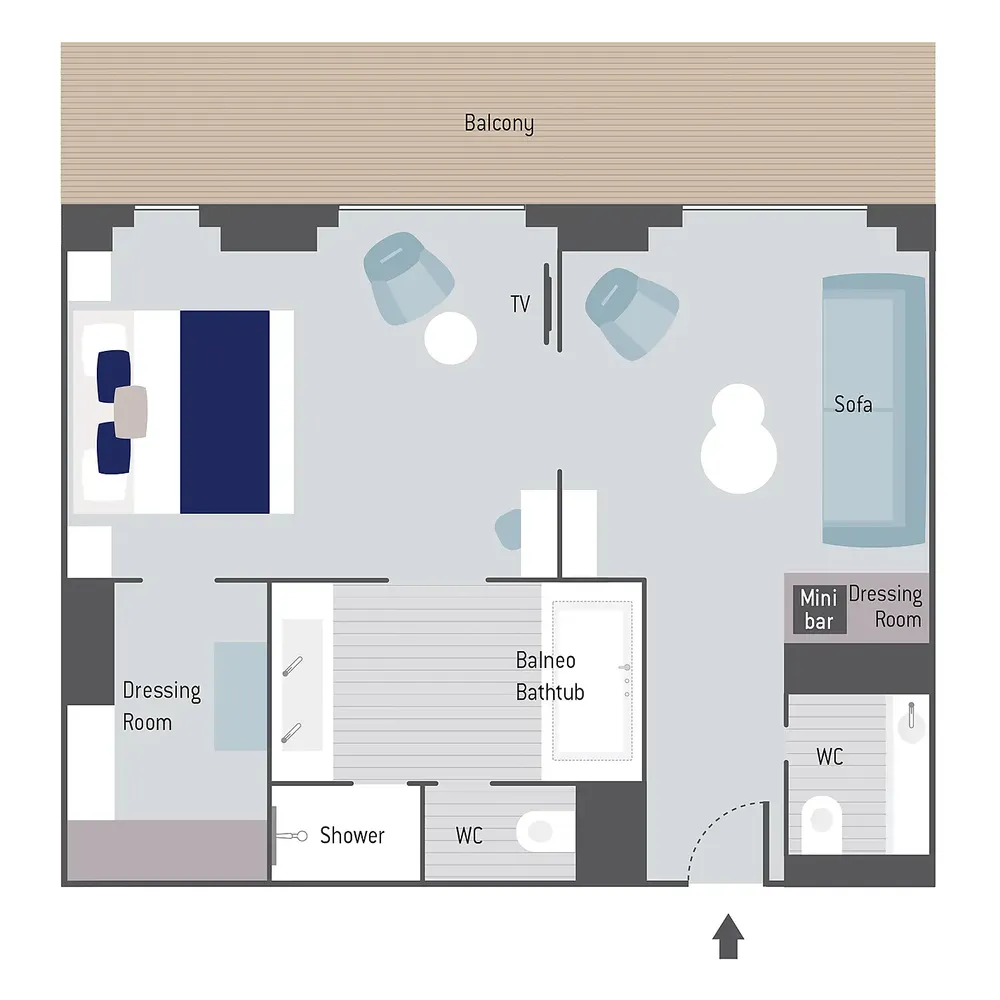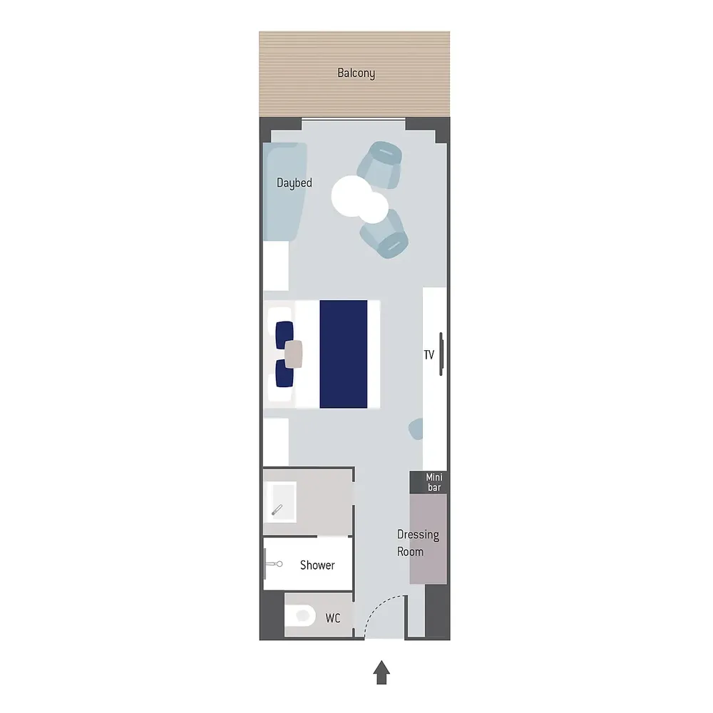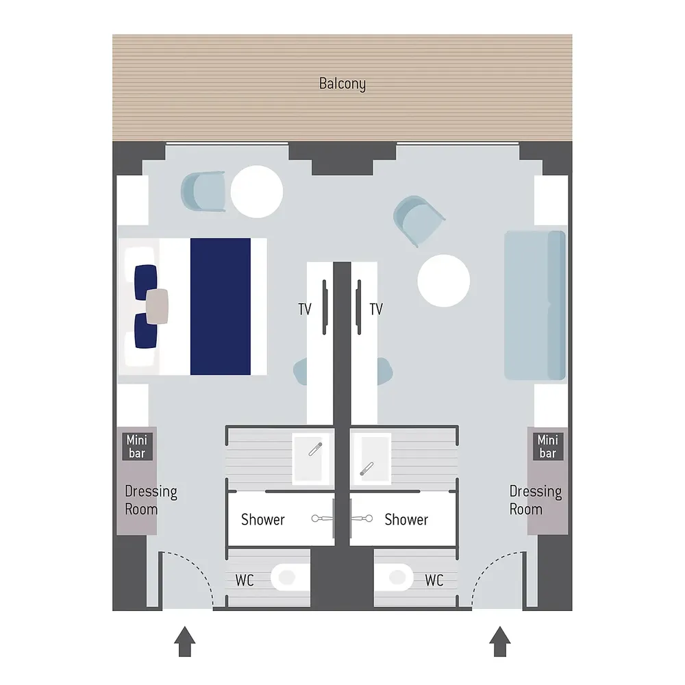 Площадь каюты: ~ 94 м2 (балкона ~ 26 м2)