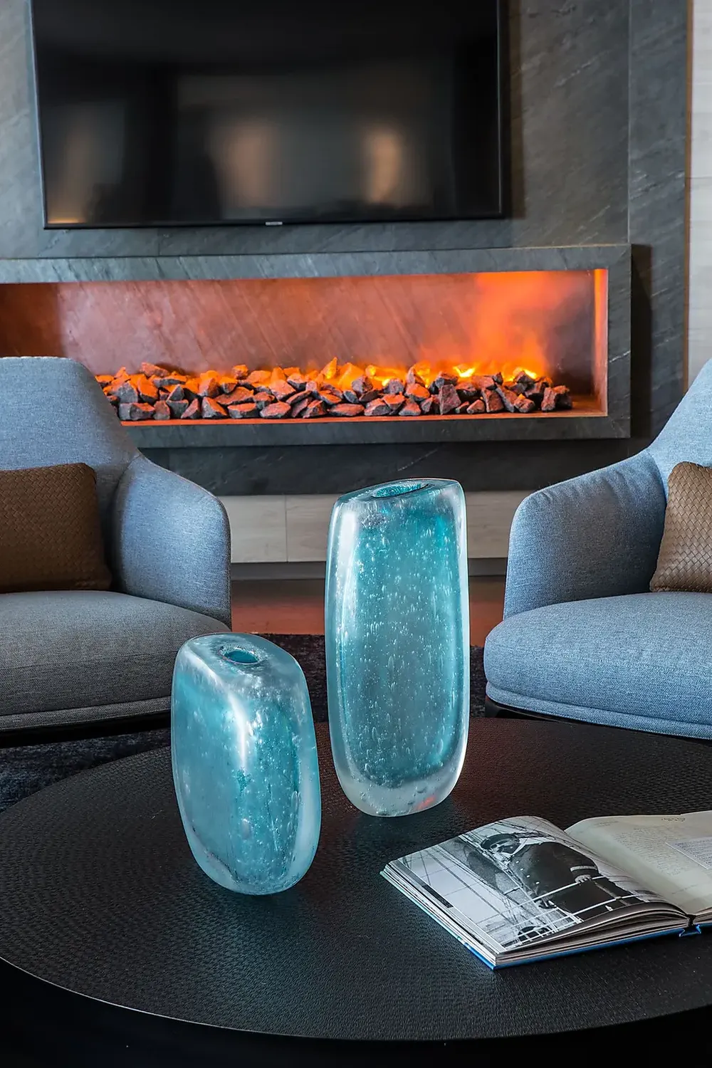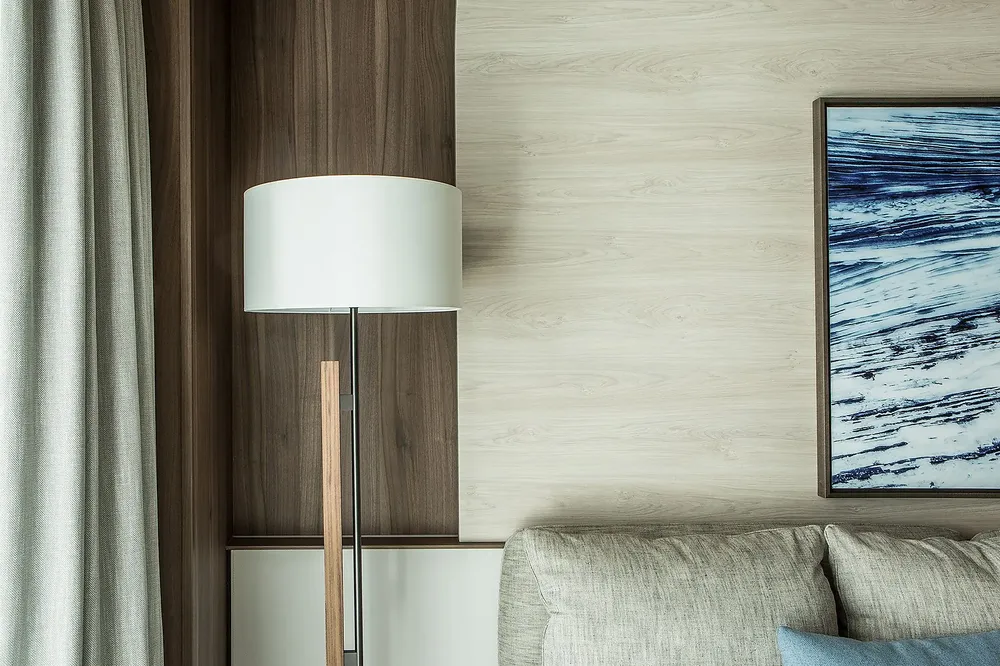 • Гостиная с диваном, креслом, телевизором и раздвижной дверью