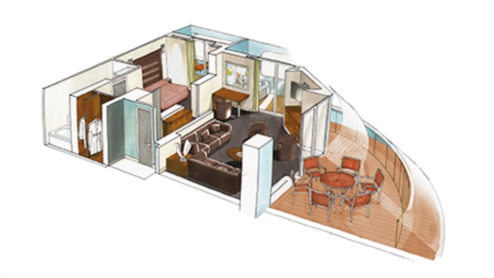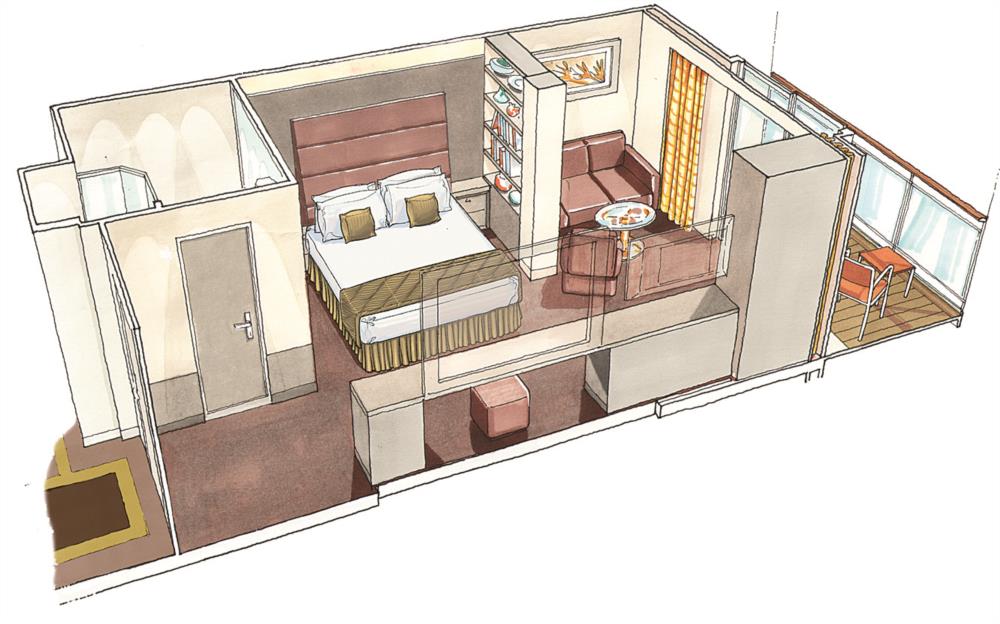 Площадь каюты: ~ 59 м2 (балкона ~ 23 м2)